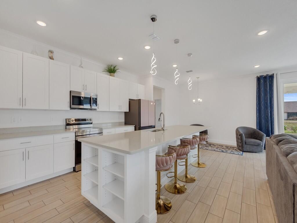 Welcome to this beautifully maintained, move-in ready home offering the perfect blend of comfort, style, and functionality. A spacious residence offers 4 bedrooms plus a dedicated office/flex space and a 2.5-car garage.From the moment you arrive, the charming front porch and inviting curb appeal set the tone. Inside, you'll find a bright open-concept layout with high ceilings, recessed lighting, and neutral finishes throughout. The expansive living area flows seamlessly into the gourmet kitchen,...Welcome to this beautifully maintained, move-in ready home offering the perfect blend of comfort, style, and functionality. A spacious residence offers 4 bedrooms plus a dedicated office/flex space and a 2.5-car garage.From the moment you arrive, the charming front porch and inviting curb appeal set the tone. Inside, you'll find a bright open-concept layout with high ceilings, recessed lighting, and neutral finishes throughout. The expansive living area flows seamlessly into the gourmet kitchen, complete with crisp white cabinetry, quartz countertops, stainless steel appliances, and an extended center island offering generous seating and additional prep space. The kitchen is enhanced with updated modern pendant fixtures and a refrigerator with interchangeable panels, creating a clean, customizable design aesthetic. This thoughtfully designed space is ideal for entertaining or everyday living.. The primary suite is a private retreat featuring tray ceilings, generous space for furnishings, and a luxurious en-suite bath with dual vanities, a large walk-in shower, and an oversized walk-in closet. Secondary bedrooms are well-proportioned with ample closet space and natural light. Step outside to enjoy the covered patio overlooking a spacious backyard with room to design your dream outdoor oasis -- whether that's a pool, garden, or extended entertaining area.